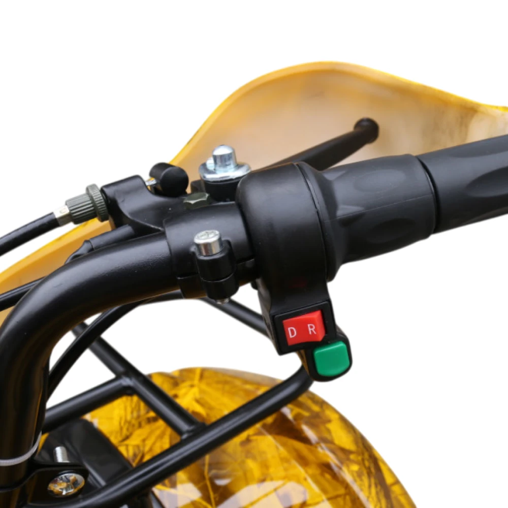 Квадроцикл GreenCamel Atakama T200 Золотая осень рассчитан на детей в возрасте от семи лет. Это очень бойкая машина – по техническим характеристикам он не уступает ряду электроскутеров для взрослых. Его максимальная скорость равняется сорока километрам в час. Для полной подзарядки батареи потребуется одиннадцать часов, после чего квадроцикл способен будет преодолеть до 40 километров пути. Есть возможность установить батарею 42Ah Boston, которая увеличит пробег на одном заряде до 80 километров. Для безопасности вашего ребёнка квадроцикл снабжён надёжными тормозами: гидравлические дисковые сзади и барабанные механические спереди.