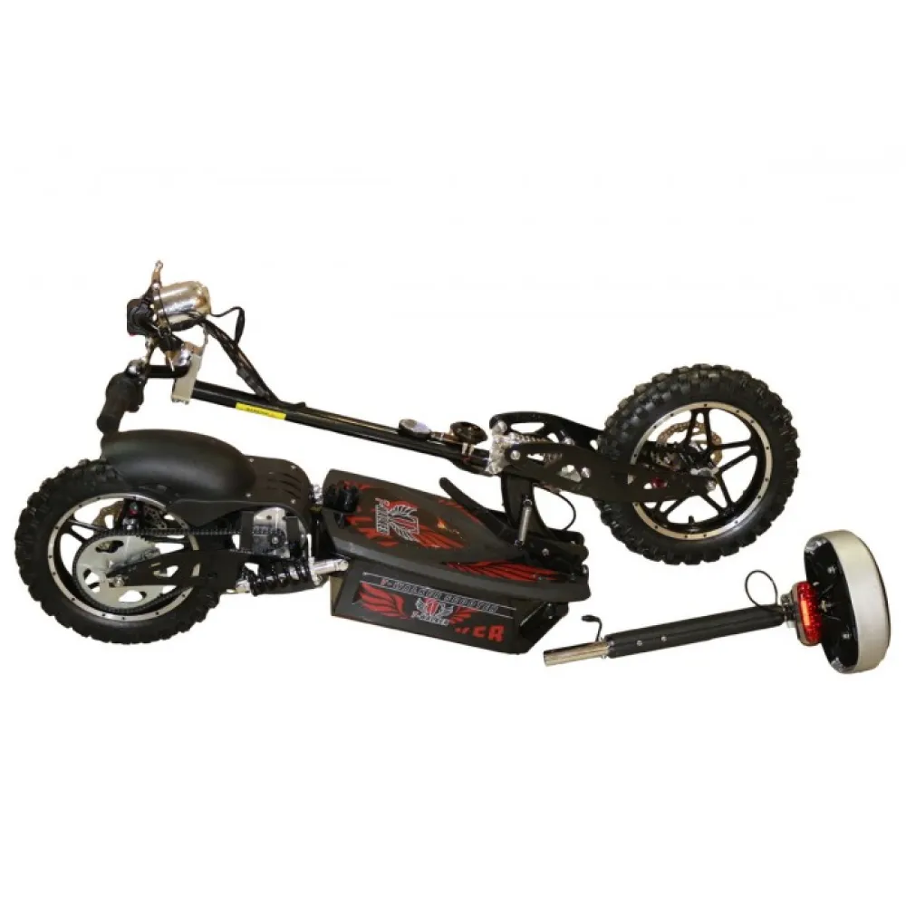 Съёмное сиденье, спидометр, передняя светодиодная фара, задний фонарь со стоп- сигналом, звуковой сигнал, заднее крылo.
