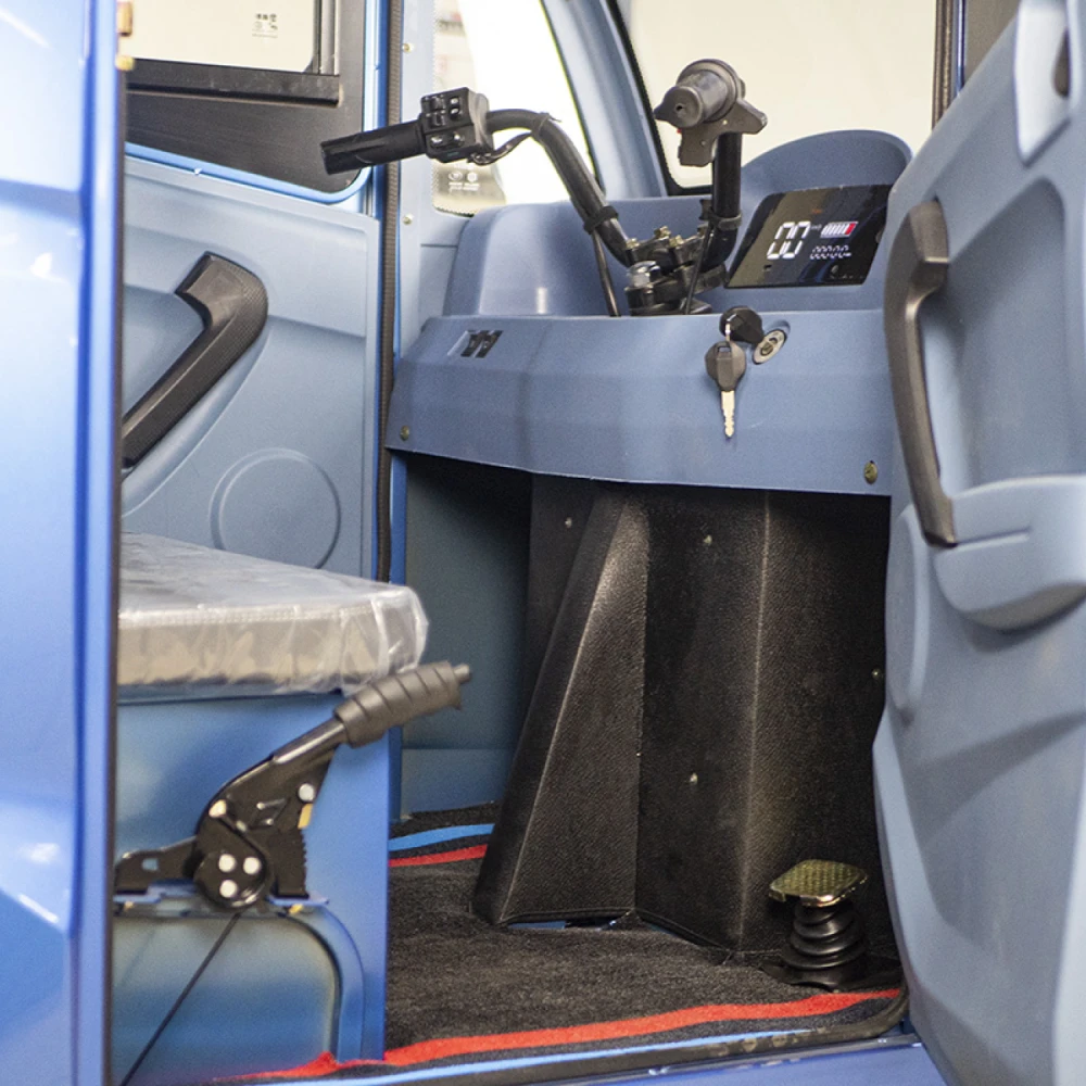 С грузоподъёмностью до 750 кг и прочной рамой он уверенно справляется с перевозкой паллет, ящиков, бочек и строительных материалов. Задний привод и двигатель на 1000 Вт обеспечивают уверенное движение даже при полной загрузке. А благодаря пробегу до 80 км на одном заряде вы сможете весь рабочий день перемещать грузы без подзарядки.