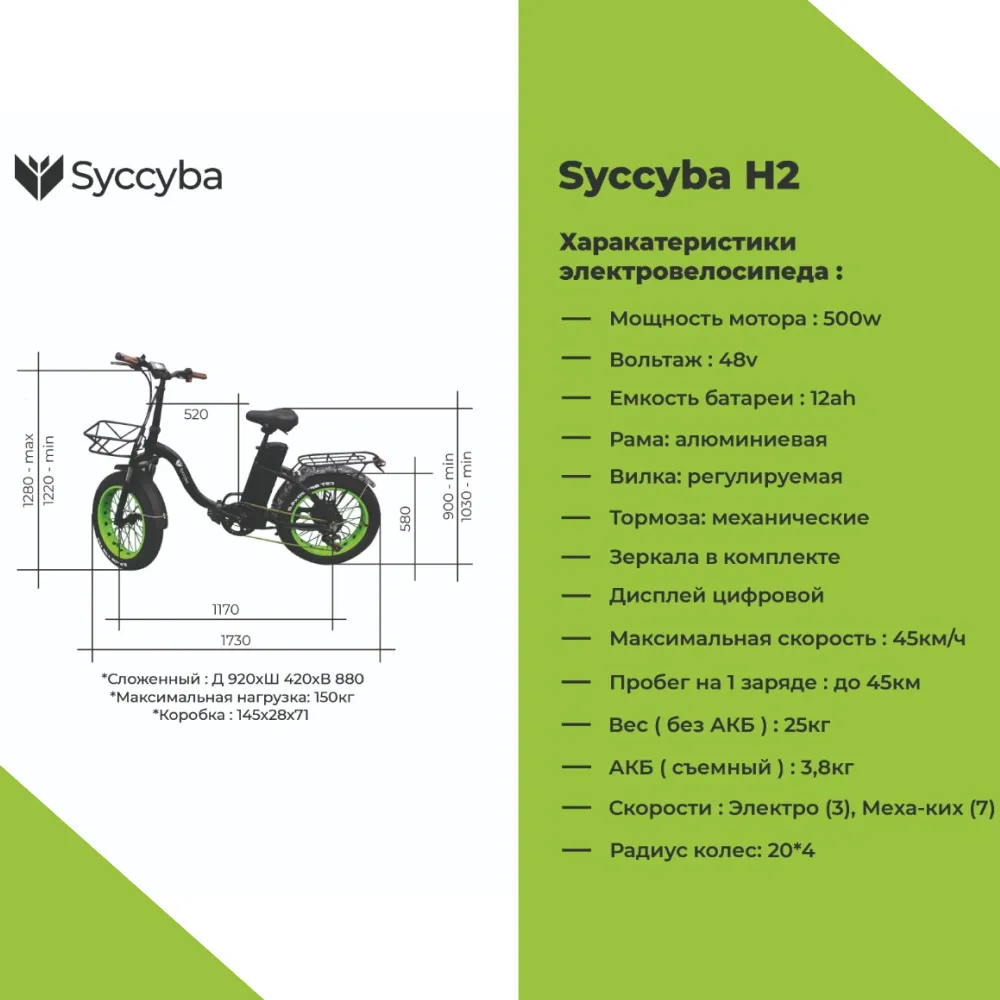 Электровелосипед Syccyba H2 BLUE