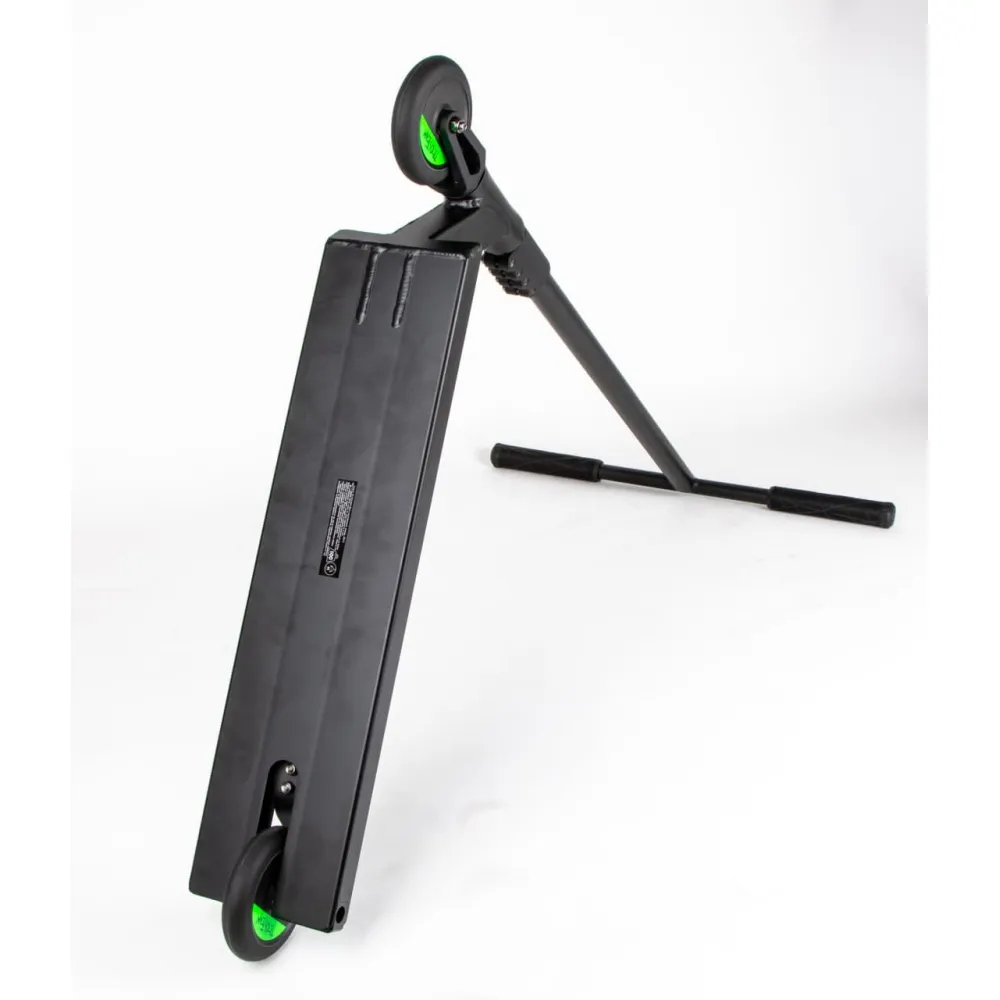 Колесная часть оснащена полиуретановым нестираемым покрытием и металлической ступицей. Модель относится к категории, складываемой. При необходимости райдер может транспортировать самокат удобным для него способом, в том числе и ручным.
